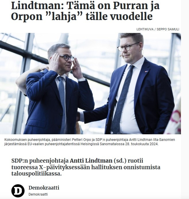 SDP:n puheenjohtaja Antti Lindtman (sd.) ruotii tuoreessa X-päivityksessään hallituksen onnistumista talouspolitiikassa, uutisoi Demokraatti