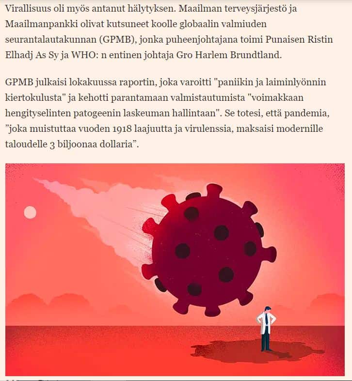 Tim Hardford on oma artikkeliaan varten kaivanut esille varautumissuunnitelmia, joista merkittävä on maailman pankin ja WHO:n seurantaryhmän raportti.
