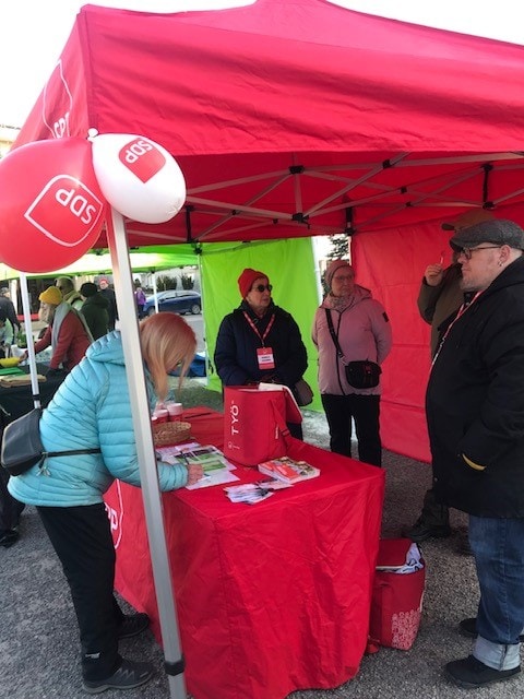 Sini Mustatkin olivat läsnä aika lähellä Perussuomalaisten telttaa.