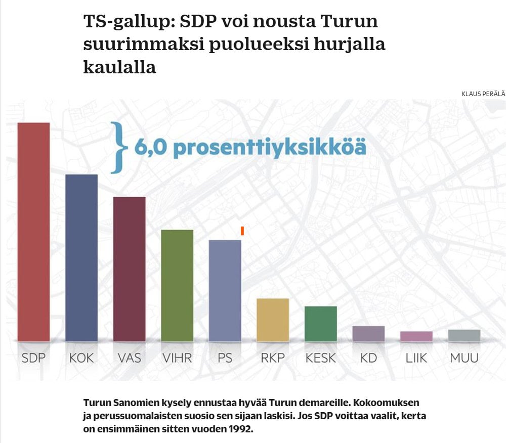 Turun Sanomat suorituttaa ennen vaaleja gallupin. Enkä ole ilon pelaaja kun sanon, että näin ollut aikaisemminkin.