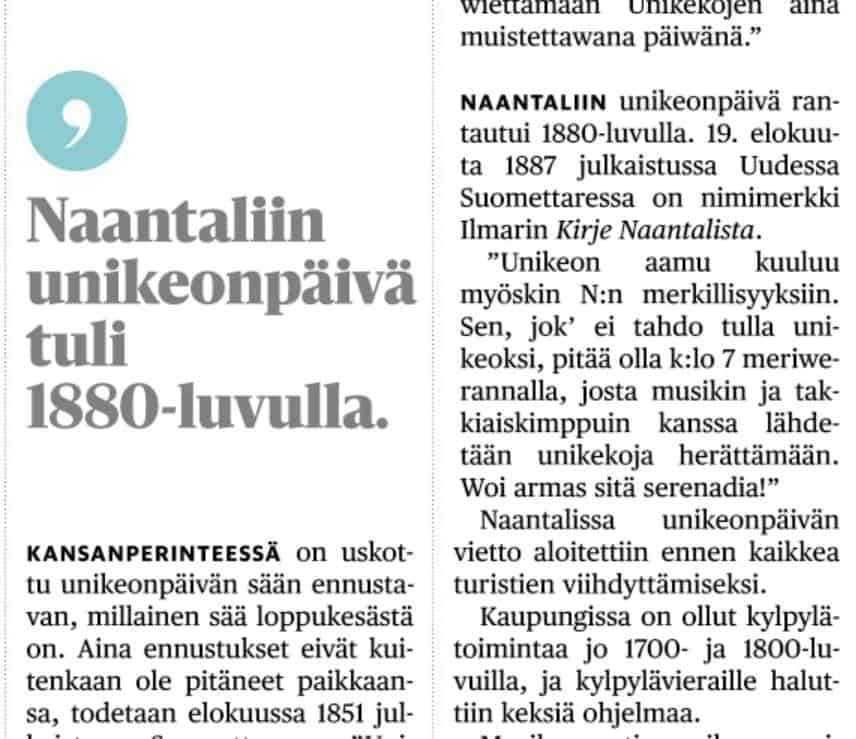 Naantalin sai hienoa mainosta aamutelkkarissa Unikeonpäivänä. Asioista tavallisesti hyvin perillä oleva Ylen Minna Rosvall tiesi kertoa perinteen alkaneen jo 1958.!