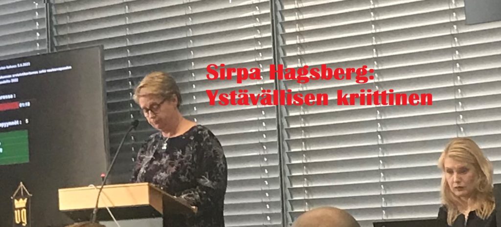 Sirpa Hagsberg, sd. halusi muistuttaa, että soteasiaa käsitellään kaupungin toimena viimeistä kertaa