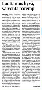 Naantalilaiset ovat julkisuudessa ja uskon pääosin myös käytännössä tyytyväisiä Naantalin vanhusten hoidon palveluista. Yksinkertaiset syyt johtuvat siitä, että Naantalissa toiminta on julkisessa hallinnassa – Naantalissa ei ole yksityisiä hoitolaitoksia. Kaupunki hoitaa itse ja kolmatta sektoria eli voittoa tavoittelematon Aurinkosäätiö on hoitanut tehtävänsä vielä paremmin.  Ja rahaakin on saatu, kun on kunnolla rutistettu. Tarpeet kasvavat ja aktiivisesti tuli edelleen jatkaa uusien tilojen rakentamista.
