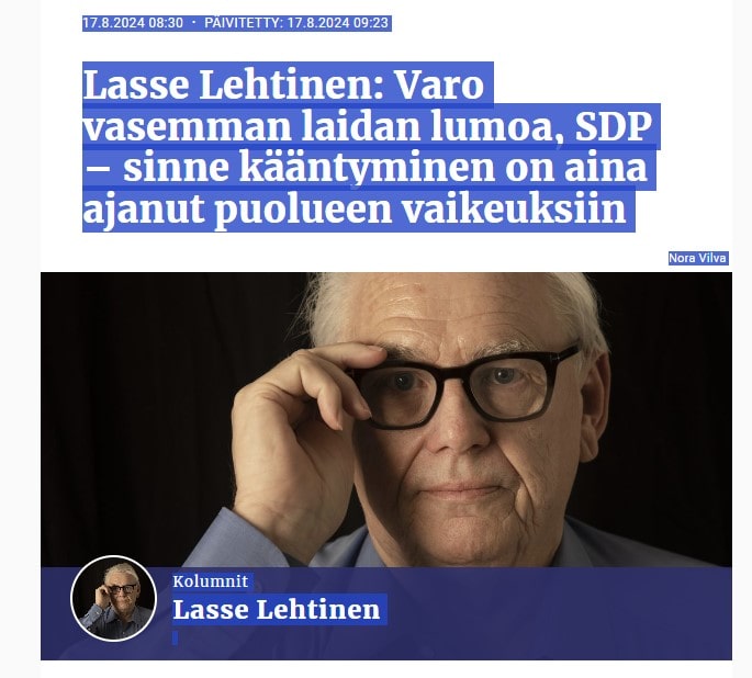 Harri Lahtinen ei ole väärässä, kun näkee historiallisesti ajassamme – sanon 1930-luvun oikeistopolitiikan piirteittä, joita vastaan Väinö Tanner rohkeasti taisteli. Nytkin totalitäärisyys on maailmanlaajuinen uhka ja Venäjä tällä kerralla oikeistoradikaalina kansallisvaltiona uhkana. Eli uhkamme ei ole meidän pelkäämä totalitäärinen ”vasemmisto” vaan oikeisto, jos näitä ilmiöitä voi näille akseleille projisoida.