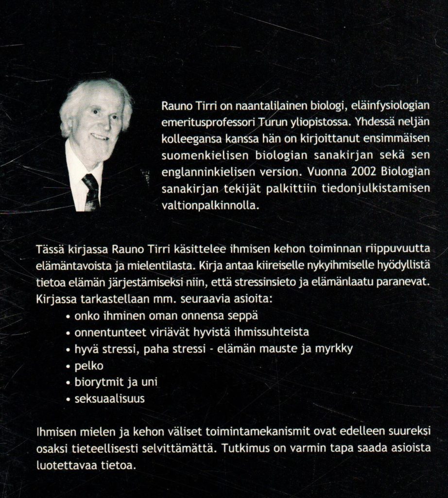 Kun sain tiedon Rauno Tirrin poismenosta, kaivoin yhden hänen kirjansa : Jatkuvan onnen tunteen harhan vuodelta 2006.Selaisin sitä ja huomasin, että kirjassa oli paljon kokemusperäistä tieteellisen pohjan lisäksi. Rauno Tirri eli kuten opetti;