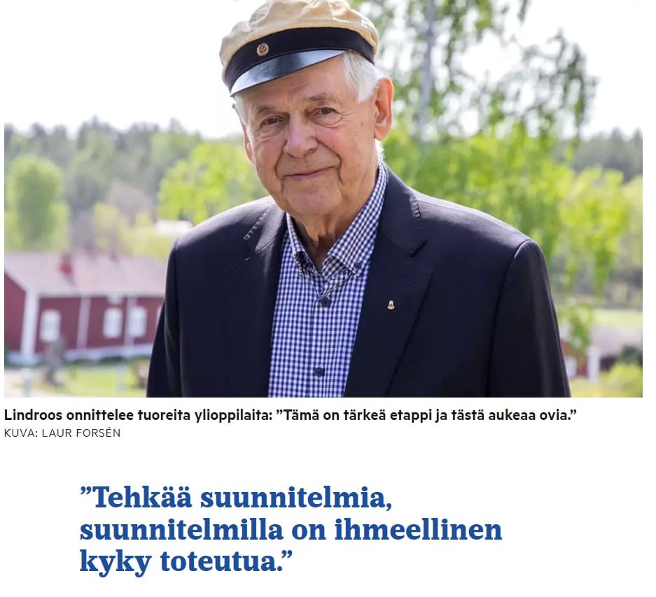 Juhlalehdessä oli hieno haastattelu 70-vuotta sitten ylioppilaaksi kirjottaneesta Luonnonmaan isäntien isännästä Risto Lindroosista.
