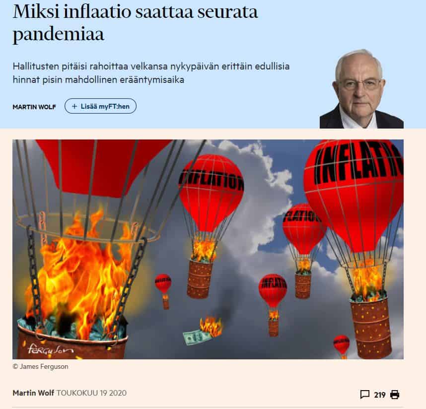 Martin Wolf pohtii pandemian jälkeisen ajan talouden tilaa ja eritysesti kysymystä käyttäydytäänkö nyt kuten sotien jälkeen inflaatioon, joka hoiti velkakuormaa.