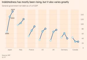 Meidän on aloitettava alustavista olosuhteista. Aloitimme tämän kriisin suurella yksityisen velan määrällä, alhaisilla koroilla ja jatkuvasti alhaisella inflaatiolla. Seitsemän johtavan korkean tulotason maan ryhmässä yhdelläkään ei ole velkaa yhdistyneen kuningaskunnan vuoden 1945 velkaan (250 %/BKT )verrattuna. Japanin nettovelka oli kuitenkin 154 prosenttia suhteessa BKT:hen ja Italian 121 prosenttia kriisiä edeltävänä aikana.