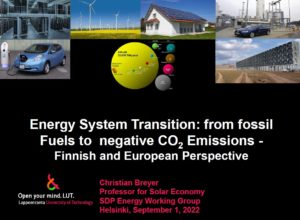 Solarprofessori Christian Breyer kertoo, että aurinkoa on yllin kyllin ja tuulta tarpeeksi ja uusiutuvan tuotannon hinta on putoamassa vauhdilla. Tekniikka kehittyy sähköjärjestelmienohjauksessa ja sähkön varastointikin maametallien rajoituksista huolimatta onnistuu. Tulevaisuus näyttä sanan mukaisesti aurinkoiselta.