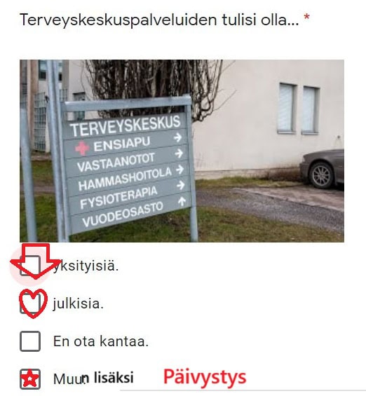Naantaliin päivystys takaisin!Mikään chatti ei korvaa eläviä ihmisiä,kun on hätätilanne tai kun on sairas eikä pääse lääkäriin ennen klo:16.Nyt kaikki ohjataan Turun päivystykseen,jossa on jo valmiiksi uskomattoman pitkät jonot ja lähes kymmenen tunnin mittaiset odotusajat aulassa istuen,oli vaiva mikä tahansa.Siihen päälle nyt kaikki Naantalissa asuvat,joista osa tulee kauempaa saaristosta.Tällä tavalla vähennetään lääkäriin hakeutumista ja osa vioista jotka todella tarvitsisivat hoitoa-jää kokonaan hoitamatta.Näin varmasti syntyy suurempia laskuja,kun hoidot aloitetaan myöhemmin tai pahimmassa tapauksessa joku kuolee kokonaan ilman hoitoa.Laitetaan johonkin pystyyn nimien keräyslista päivystyksen takaisin saamiseksi tai jos sellainen jo on niin tietoa siitä.Luulisi olevan kaupungillekkin pelkästään hyvää mainosta,että kaupungissa toimisi omassa terveyskeskuksessa päivystys kuten ennenkin,eikä tarvitsisi miettiä matkaa Turkuun ja siellä tuntikausien odottelua ensin sairaanhoitajan arvioon ja siitä taas tuntien odotus ennen kuin kukaan ehtii potilasta katsoa tai tehdä jotain.Päivystyksessä olevat lääkäri ja hoitajat tuskin ovat palkkakuluissa Naantalin pelastus,jos ne jätetään pois tuskin siitä tulee niin suurta säästöä!