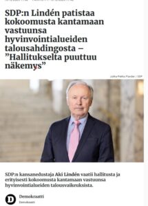 Demokraatissa Aki muistuttaa Kokoomusta asioiden hoidosta ja tyylistä. SDP:n Lindén patistaa kokoomusta kantamaan vastuunsa hyvinvointialueiden talousahdingosta – ”Hallitukselta puuttuu näkemys” | Demokraatti.fi Aki tuntee asian ja osaa ja rohkenee kertoa….