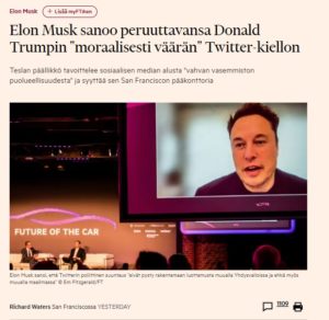 Sanotaan, että valta pilaa ja absoluuttinen valta absoluuttisesti ihmisen. Vladimir Putin idässä on soittanut väitteen oikeaksi. Hän puhuu moraalisesta oikeutuksesta tappamiseen! Nyt tulee lisätodisteita lännestä: Elon Musk ja hänen Twitter…