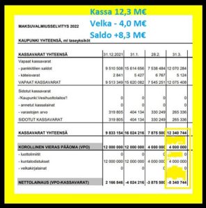 TILIK. YLI-/ALIJÄÄMÄ TP 2020 = 10 264 241 € / TP 2021 = 2 416 307 € / TA 2022 = 15 787 € / Tot. 1-3 kk 2022 =…