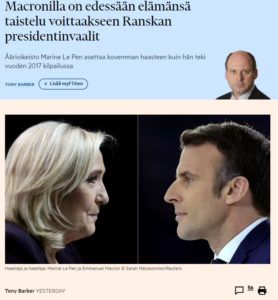 Macron saa lohtua siitä, että hänen ensimmäisen kierroksen johtonsa Le Peniin oli exit polls -kyselyjen mukaan suurempi kuin hän onnistui vuonna 2017. Lisäksi mikään mielipidemittaus ei ole osoittanut, että Le…