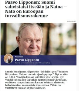 Paavo Lipponen Demokraatin kolumnissaan kirkastaa Suomen linjan alkuperäisiä perusteita, joista on matkan varrella etäännytty Nyt tilanteen vaatiessa palataan perusuralle. Näin Liponen kirjoittaa: SUOMEN kansallinen puolustuskyky on perusasia kaikissa mahdollisissa turvallisuusratkaisuissa. Tämä…