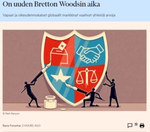 Rana Foroohar kirjoittaa uudesta kansainvälisen talouden ajasta ja vertaa aikaamme toisen maailman sodan jälkeiseen. Tuolloin luotiin pelisäännöt, jotka sopivat tuolloin vallalla olleeseen käsitykseen siitä, mitä maailma ei tarvinnut; ei natsismia…