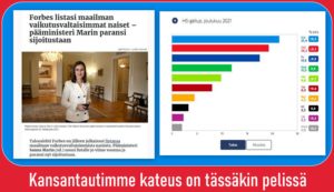 Forbes nostaa ja Elo Musk kehuu Marinin Sanna. Sekös Suomessa sapettaa. Asiatkin menevät hyvin, paremmin kuin aikoihin. Talous ei Suomessa tahtia määrää eikä työllisyys. Velka ja Vero-kirosanoilla pärjää, ripaus maahanmuuton…