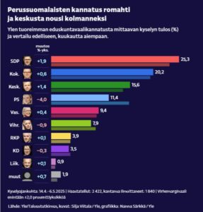 SDP nousi selvästi riihipäätösten jälkeen Oppositiopuolue SDP pitää paikkansa Suomen suosituimpana puolueena. SDP:n kannatus nousi 1,9 prosenttiyksikköä 25,3 prosenttiin. SDP kasvatti hieman kaulaansa kokoomukseen. – SDP:lle kannatusta on tullut eniten…