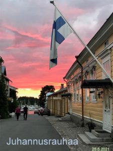 Juhannuksen vietto tavoitteli normaalia. Kirkkopuiston lipunnosto oli uudistettu. Lippu nousi Naantalin Sinisten voimin eikä tilaisuudessa tarvittu vieraan apua eli Turun kansantanssin ystävät oli korvattu naamiotanssilla: Hönttä ”Hönttis” Hilpurainen juhannustunnelmissa. Jari…