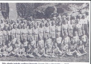 TUL.n LIITTOJUHLA Helsingissä 27.-30. 06. 1946. Selaillessani kuva-arkistoani, tuli esiin iso kuva 1946 Liittojuhlille osallistuneista, Työväentalon pihalla. Kuva pysäytti muut ajatukset pitkäksi aikaa. Kuva pysäytti muut ajatukset, tosiaankin. Kasvo kasvolta…