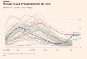 Michiganin osavaltio raportoi tällä hetkellä noin 7000 uutta Covid-19 -tapausta päivässä Johns Hopkinsin yliopiston tietojen mukaan – siis lähellä viime marraskuussa saavutettua huippua. kuten kuvasta voimme päätellä. Michiganin terveysosaston tuoreimpien…