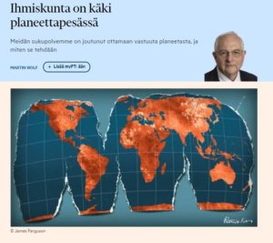 Nykyään ihmiset ja karja, jota kasvatamme ravinnoksi, muodostavat 96 prosenttia kaikkien planeetan nisäkkäiden massasta. Lisäksi 70 prosenttia kaikista elävistä linnuista on siipikarjaa – enimmäkseen kanoja, joita syömme. ….. Näin raflaavasti…