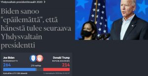 Tilanne on ollut eilisen päivän samoissa asemissa. Ja nyt Joe Biden näyttää uskovan voittoon. Ja FT uutisoi näin: Joe Biden sanoi torstaina, ettei ollut epäilystäkään siitä, että hänet valitaan Yhdysvaltain…