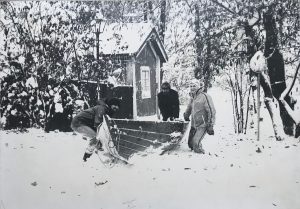 Kaivoin tämän kuvan esille jo hyvän aikaa ennen lokakuun loppua. Muistin, että vuoden 1980 kunnallisvaalien jälkeisenä viikon vaihteessa oli lumipyry. Leena oli sairaalassa polvileikkauksesta, Tiina serkku kuljetti nelikuukautista Anttonia sairaalaa…