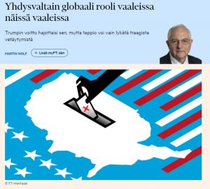 Martin Wolf tiivistää miksi marraskuun 3. päivän vaalit vaikuttava koko maailmaan. Lyhennelmä hänen kolumnistaan FT:ssä) Nämä Yhdysvaltain vaalit ovat tärkeimmät vuodesta 1932, jolloin Franklin Delano Rooseveltista (FDR) tuli presidentti laman…