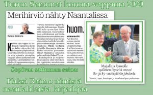 Lehdissä on monta osaa: On pääkirjoitusivu alio-juttuineen ja sitten loppupuolella ilmoituksia onnitteluineen. Vapun TS:ssä sattui löytymään kahden naantalilaisen kuvat lehden alku ja loppu puolelta. Kuvia yhdisti Raimo – nimet ja…