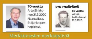 Sattumalta peräkkäisinä päivin TS:n merkkipäivistä ilmoittavat naantalilaiset: Jaakko Nevarilla tänään 80 ja Arto Sinkkonen eilen 70 -vuotissynttärit. Onnea! Jaakko Nevari on todellinen yrittäjä Rymättylästä. Veljesten Veikkon ja Jaakon ansiot ovat…