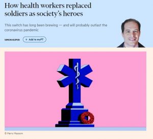 Simo Kuper kirjoitti FT:ssä osuvasti muutoksesta: Joka ilta kello kahdeksan, perheemme ja minä seisomme parvekkeellamme ja liitymme suosionosoituksiin ranskalaisille terveydenhuollon työntekijöille. Suosionosoituksia on uusin globaali rituaali, joka leviää italialaisilta parvekkeilta…
