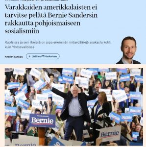 Sosialismi on puheenaiheena USA:n presidentinvaaleissa. Onhan se aina ennekin ollut – haukkumasanana eli toisten ehdokkaiden mustamaalaamisessa käytettynä. Sen sijaan nyt Berniä Sanders nimittää itseään sosialistiksi tai pohjoismaiseksi sosiaalidemokraatiksi. Kun Demokraattien…