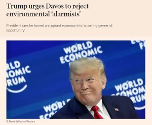 Donald Trump on käyttänyt puhettaan Davosin maailman talousfoorumille hyökkäämään ympäristöä koskeviin ”hälyttäjiin” ja taloudellisiin ”pessimisteihin”. Hän on antanut päättäväisen äänen tapahtumassa, jota hallitsevat ilmastomuutoksen uhat ja talouden taantuma. Yhdysvaltain presidentti…