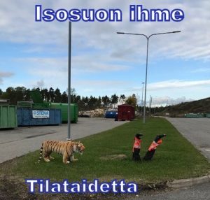Kuvan tilataideteos on Isosuon kaatopaikalta. Se on muistomerkki hyvästä yhteistyöstä, nimittäin kaatopaikka perustettiin aikoinaan kolmen kunnan Raision, Maskun ja Naantaliin yhteishankkeena. Kustannuksia säästettiin ja toimintaa tehostettiin. Nyt isosuo toimii Turun…