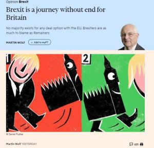 Martin Wolf kirjoittaa FT:ssä Brexitin loputtomasta matkasta aloittamalla lainauksella: Vuonna 1933 Joseph Goebbels totesi: ”Saksan kansa ja sen hallitus ovat yksi asia. Kansan tahto on hallituksen tahtoa ja päinvastoin. Saksan…