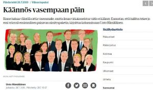 Antti Rinteen hallitusohjelman verotuslinja ei ole vasemmistolainen Käännös vasempaan päin on todellisuudessa täyskäännös vasempaan eli takaisin Sipilän hallituksen verolinjoilla. ”Rinteen kunnianhimoinen – joskin julkilausumaton – tavoite on murtaa Suomessa pitkään…