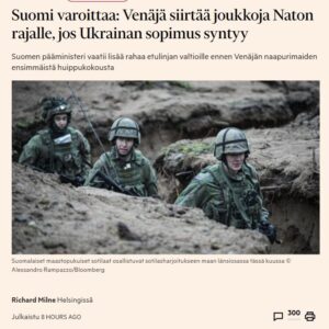Tänään on taas Ukrainan rauha lähempänä kuin koskaan – ja se tarina on totta ollut ja on. Financial Times uutisoi reunavaltioiden tapaamisesta. Suomi toivoo aiheellisesti apua EU:lta – niin nyt…