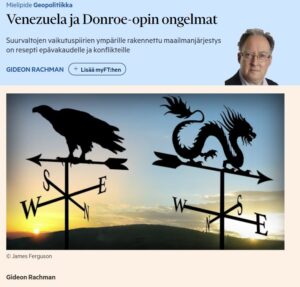 Gideon Rachman harvoin osuu harhaan. Nyt pelottaa todella, kun lukee hänen Venezuela ja Donroen opin ongelmat. https://www.ft.com/content/dcd8aa7d-630b-45b0-889c-07c3e8052804 Se on korutonta kertomaa todellisesta uhasta, joka kohdistuu meihin kaikkiin – ihmisistä ja…