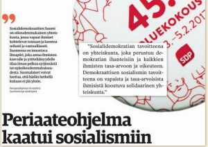 Sosialismi ei ole helppo juttu. Sen idea on ymmärretty pääasiassa väärin, niin vastustajien ja puolustajien keksuudessa. Siihen soveltuukin tokaisu: ”Hyvä aate, mutta jätkät pilasi!”. Mikko Salmi kirjoittaa 13.4.2017 Demokraatissa, että…