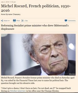 Euroopan Parlamentin sosialidemokraattisen ryhmän kokouksessa vieressäni istui Michel Rocard. Ranskan entinen pääministeri ja Sosialistipuolueen pääsihteeri kuoli FT:n tietojen mukaan heinäkuun toisena päivänä 85 vuoden iässä. Hänen kuusikymmentä vuotta kestäneen uran…