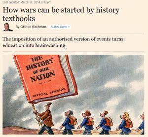 Kun poliittiset johtajat aloittavat historian uudelleen kirjottamisen, meidän pitäisi pelätä tulevaisuutemme puolesta. Venäjä, Unkari, Japanissa ja Kiinassa poliittisesti tuetaan pyrkimyksiä muuttaa historian oppikirjoja. Se on varoitusmerkkejä nationalismin noususta. Tammikuussa Vladimir…