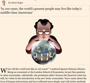 Miltä maailmassa näyttää 100 vuoden päästä?” mietti Ignacio Palacios-Huerta London School of Economicsin ekonomisti ja laittoi tämän kysymyksen toisille taloustieteilijöille. Tosin ammattikunta ei pystynyt ennustamaan rahoituskriisiä, mutta silti hän kirjoittaa…