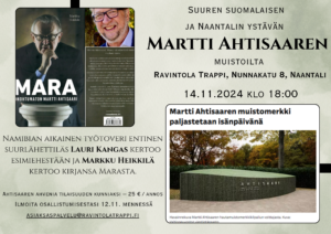 Trapissa muistellaan kirjan ja kokemuksen kautta rauhantekijää Martti Ahtisaarta. Ahtisaaren ahvenet Ekrem Kallduran ravintolassa on hieno yhdistelmä täydentämään tunnelmaan ensi viikolla presidentin muistomerkin paljastamisviikolla. Tavataan Trapissa – Ei huonoa ajankäyttöä…