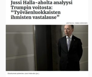 Trumpin voitto on paljastava; Nyt kehtaa olla oikeistolainen ja nyt voi kertoa tietäneensä, että näin tässä käy, kun ei ymmärretä kansaa. Aamutelkkarissa puhisi intoa katolinen konservatiivi Timo Soini, joka vertasi…