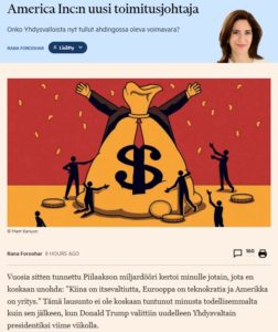 Rana Foroohar todistaa, että USA on yritys, pitää paikkaansa ja että äänestäjillä on selvä näkemys, että raha on tärkein arvo: Yhdysvalloista on tullut oman menestyksensä uhri. Pelkään, että olemme myös…