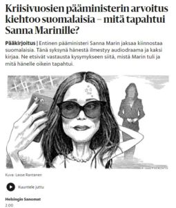 Sanna Marin pääministerikausi oli kova – vastaava ei rauhanajan Suomesta löydy. Sanna on kiinnostava ilmiönä, mutta kyllä kaupalliselle lehdistölle juuri se – mistä häntä moititaan – hänen kuvansa on tärkeä…