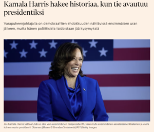 Kun Kamala Harris nimettiin edellisten presidentin vaalien alla neljä vuotta sitten kirjoitin palstalle Kamala tarkoittaa lootusta tai vaaleanpunaista sanskritin kielessä. Kamalan kaunis, sanoisi turkulainen. FT:ssä arvioitiin demokraattien ehdokkaan valintaa näin:…