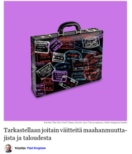Lainaan tähän alle kokonaisuudessaan Paul Krugmanin kolumnin käännöksen, joka kertoo maahanmuuton problematiikan sisällöstä mistä ei ole kysymys Trumpin tai Suomen persujen metelissä. Kirjoittaja: Paul Krugman Vuoden 2020 vaalien aattona Donald…