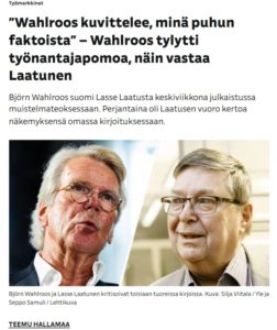 Nalle Wahlroos on saanut taas omilla kovilla tai sanoisiko pehmeillä jutuilla paljon julkisuutta. Yksi haukutuimmista on entinen työmarkkinapomo Lasse Laatunen. Yle tavoitteli jo keskiviikkona eläkkeellä olevaa Laatusta kommentoimaan Wahlroosin näkemyksiä….